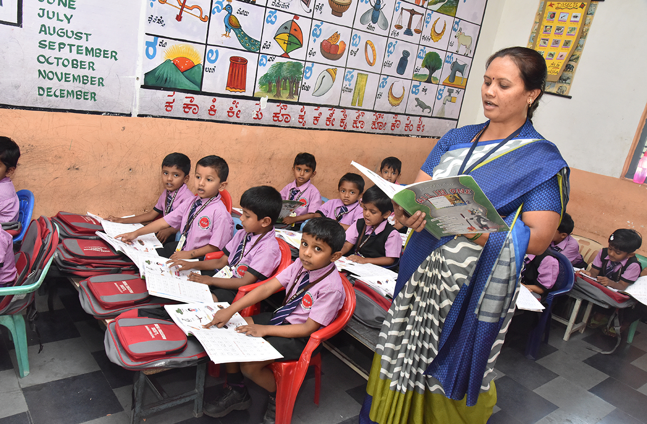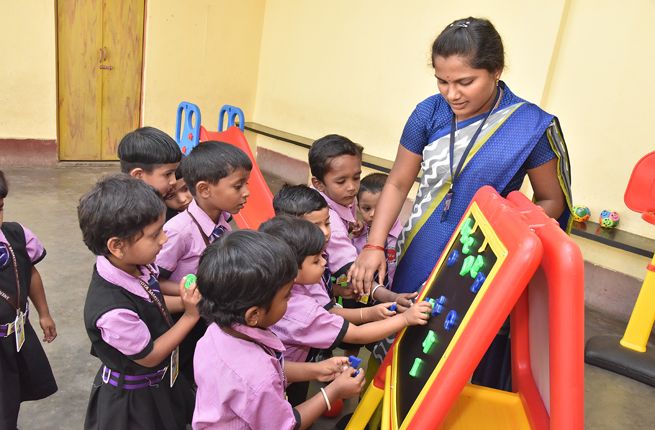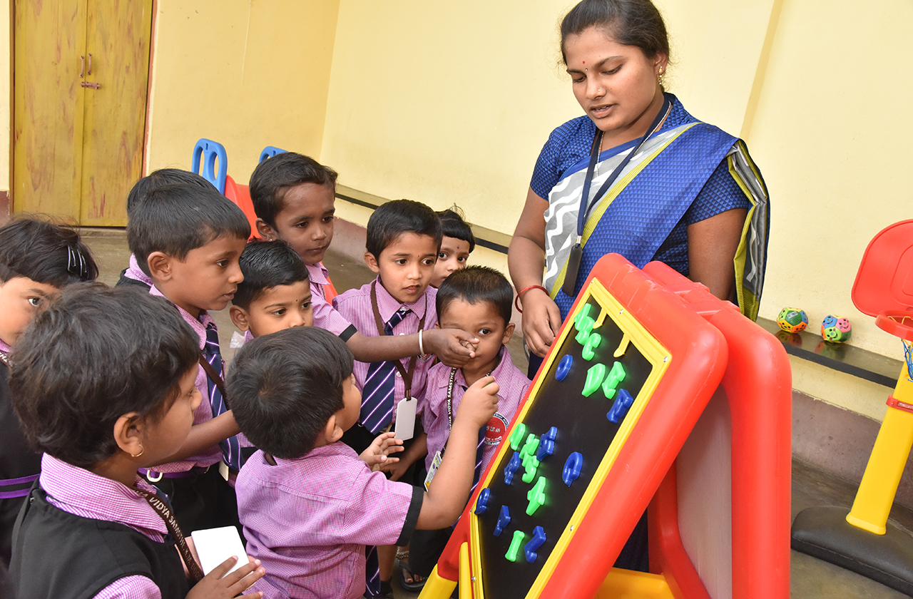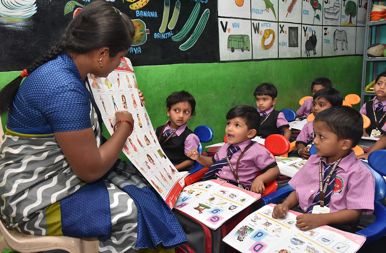 Teaching to nursery Students.