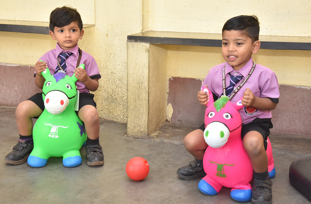 Kinder Garden kids playing with toys.